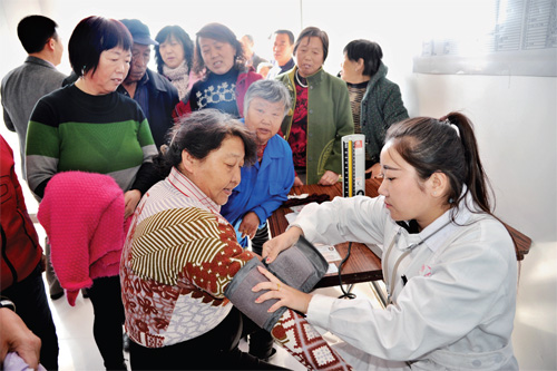 3月7日上午,代縣團(tuán)縣委在上館鎮(zhèn)橙草溝村舉行“傳承雷鋒精神,投身脫貧攻堅(jiān)”志愿服務(wù)活動(dòng)啟動(dòng)儀式,旨在動(dòng)員全縣各級(jí)團(tuán)組織和廣大團(tuán)員青年開展為期一個(gè)月的以“傳承雷鋒精神,投身脫貧攻堅(jiān)”為主題的“送溫暖、獻(xiàn)愛心”、“送金融”、“送科技”、“送文明健康”系列學(xué)雷鋒志愿服務(wù)活動(dòng)。啟動(dòng)儀式現(xiàn)場(chǎng),共收到全縣捐贈(zèng)的課桌凳1900套、圖書1126冊(cè)、文具320件、衣物1063件、書包33個(gè)、體育用品14件,將分發(fā)到貧困地區(qū)農(nóng)村和學(xué)校。圖為志愿者為民群眾義診。(石俊文 攝)