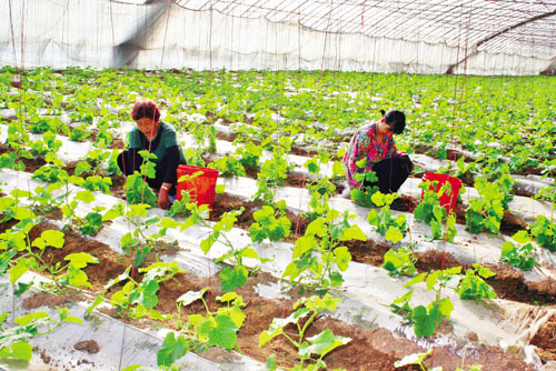 3月9日,在總投資1.2億元的原平市雙惠現(xiàn)代農(nóng)業(yè)科技示范園區(qū)的蔬菜大棚里,員工們正在對“香妃”、“芝麻蜜”香瓜進(jìn)行管理。在“冬季行動”中,該園區(qū)真抓實(shí)干,到處是一派繁忙景象,目前一棟棟大棚里各種蔬菜、瓜果長勢喜人。(趙春曉 攝)
