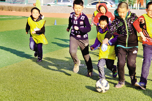 3月12日,原平農(nóng)校足球場內(nèi),小球迷正在進(jìn)行對(duì)抗訓(xùn)練。從小培養(yǎng)兒童熱愛運(yùn)動(dòng),熱愛足球,已成為時(shí)下一種教育理念。周末節(jié)假日兒童不再上各種培訓(xùn)班,踢足球,增體質(zhì),堅(jiān)定自信心,已成為一種習(xí)慣:我運(yùn)動(dòng),我健康,我是最棒的?。ㄆ?攝)