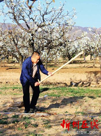 4 月16 日,游人在原平市萬畝梨園中欣賞梨花綻放美景的同時(shí),從農(nóng)民手中“搶”過镢頭,幫助農(nóng)民刨地松土,體驗(yàn)勞作辛苦,分享勞動之美。城鄉(xiāng)一體化建設(shè),新農(nóng)村景觀吸引了城市市民,節(jié)假日、周末城里人紛紛走出“水泥森林”,深入到農(nóng)村,不僅享受春光踏青賞花的樂趣,而且在鄉(xiāng)村游中,與廣大農(nóng)民一起勞動,同吃同住,體會農(nóng)耕文化之韻。(吉建平 攝)