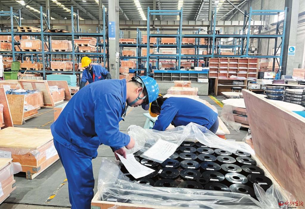 山西管家營(yíng)法蘭鍛造股份有限公司嚴(yán)格管理、科學(xué)生產(chǎn),通過(guò)設(shè)備升級(jí)與技術(shù)創(chuàng)新,為企業(yè)發(fā)展注入新動(dòng)能。圖為員工對(duì)外銷(xiāo)產(chǎn)品進(jìn)行檢測(cè)登記。(郭晶晶 劉婧攝)