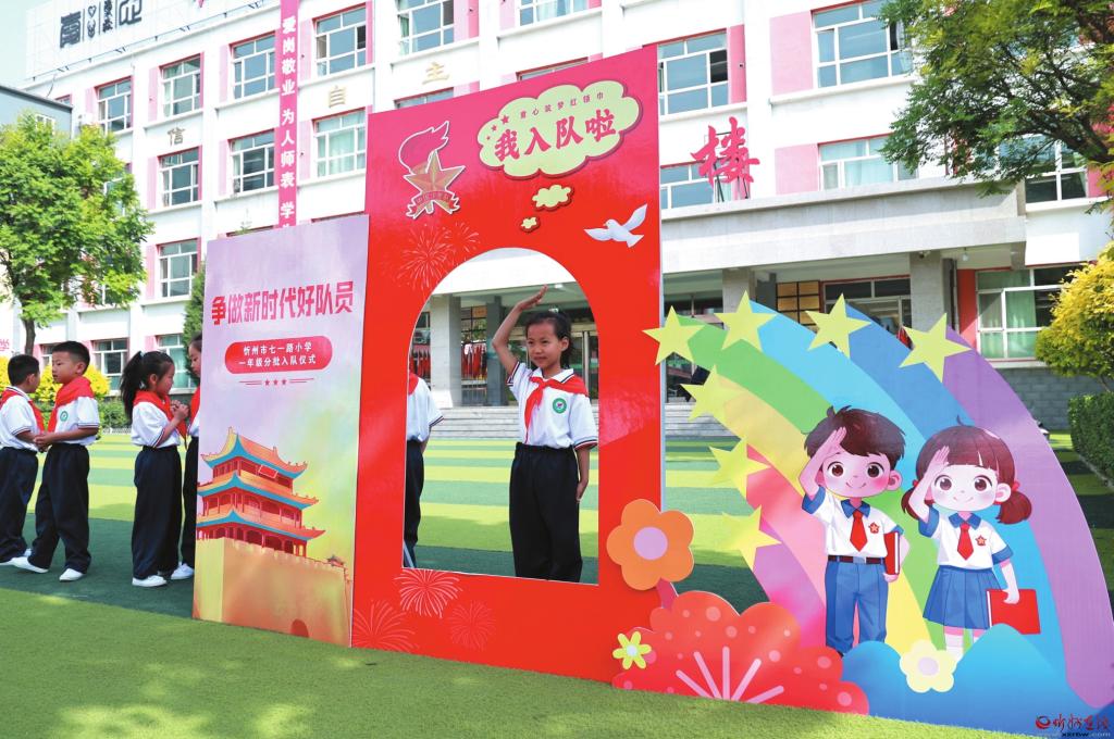 5月7日,忻州市七一路小學(xué)舉行“紅領(lǐng)巾愛祖國”一年級分批入隊儀式。此次入隊儀式不僅是孩子們邁向成長的重要起點,也是他們?nèi)松械囊粋€重要時刻。新隊員們將牢記紅領(lǐng)巾的責(zé)任,賡續(xù)紅色精神,用實際行動爭做新時代好隊員。圖為新隊員拍照留念。 (記者 張存良攝)