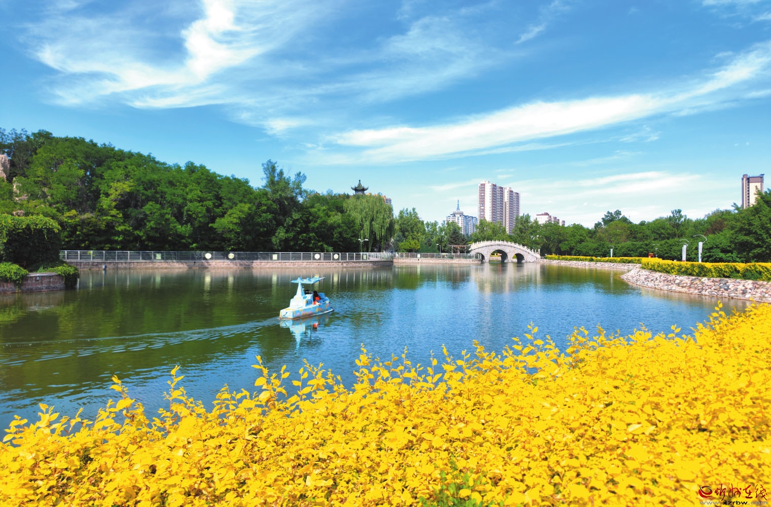 夏日的人民公園綠樹成蔭,風(fēng)景秀美,吸引不少市民和游客前往游玩。(