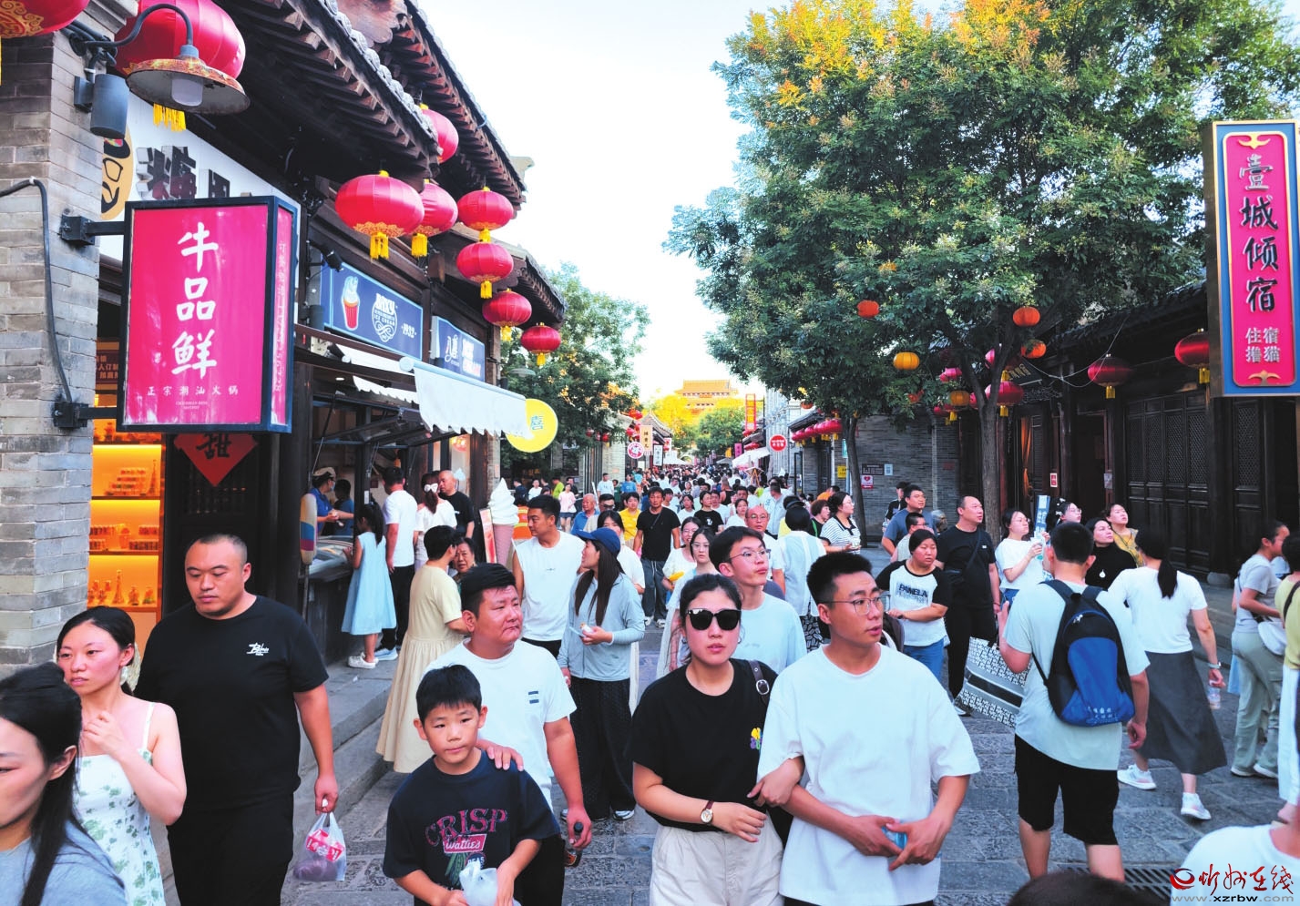 眼下正值暑期旅游旺季,文旅市場(chǎng)消費(fèi)旺盛。圖為游客在忻州古城景區(qū)游玩。 (記者 張存良攝