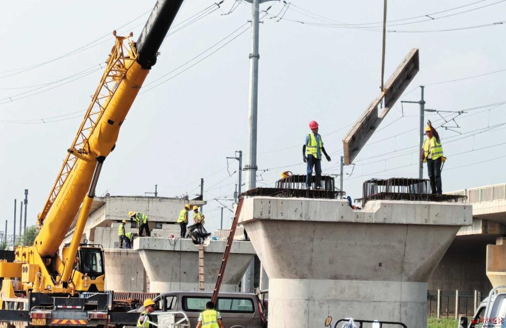 7月23日,在忻府區(qū)小奇村北,由中國鐵建第十七工程局承建的雄忻高鐵高架橋正在緊張施工中。雄忻高鐵在我市境內(nèi)總長115公里,預(yù)計(jì)2027年建成通車,將成為忻州聯(lián)通京津冀的戰(zhàn)略通道。 (記者 劉紀(jì)森攝