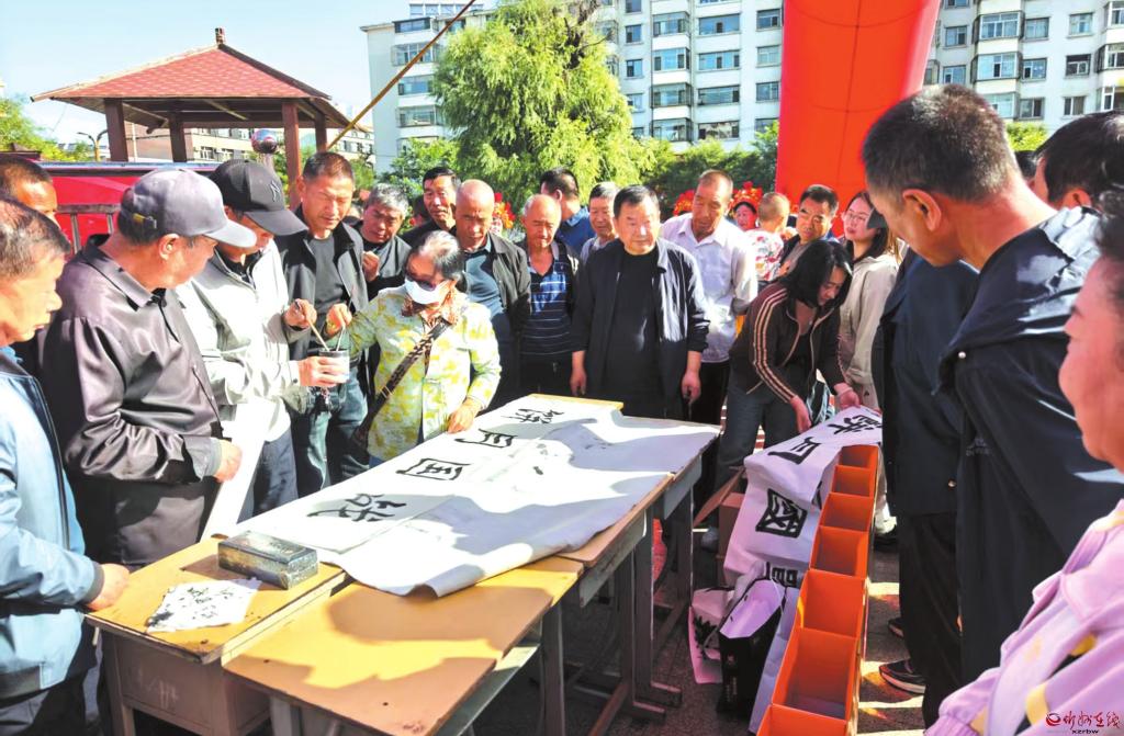 書法愛好者們揮毫潑墨,一幅幅飽含深情、寓意美好的作品躍然紙上,引得過往群眾駐足欣賞。該活動不僅豐富了群眾的精神文化生活,還營造出濃厚的節(jié)日文化氛圍。(歐麗霞攝)