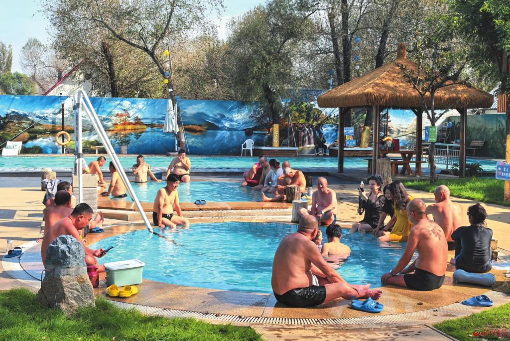 忻府區(qū)溫泉憑借其豐富的地熱資源優(yōu)勢和優(yōu)美的自然環(huán)境,吸引了各地游客慕名而來。圖為游客在忻府區(qū)北合索溫泉康養(yǎng)小鎮(zhèn)享受悠閑時光。(記者 張存良攝