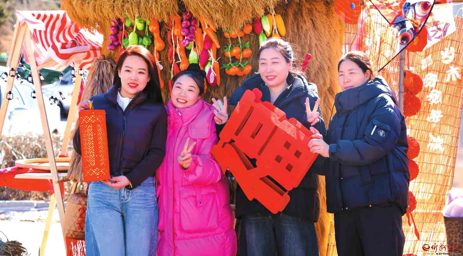 游客在蘆芽山旅游度假區(qū)游客中心新春主題打卡點(diǎn)駐足留影