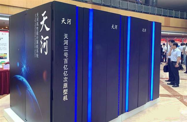 △2019年7月6日,“紀念中國超級計算事業(yè)發(fā)展四十年暨國家超級計算天津中心成立十周年”活動在天津濱海新區(qū)舉行。這是活動現(xiàn)場展示的“天河三號”百億億次原型機。