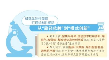 截至目前,聚焦半導(dǎo)體、碳基新材料、信息技術(shù)應(yīng)用創(chuàng)新、煤層氣、新能源、煤炭清潔高效利用等領(lǐng)域,我省已支持了3批40項“揭榜掛帥”重點項目,省財政引導(dǎo)資金2億元,帶動企業(yè)投資7億元。與此同時,涵蓋能源、大數(shù)據(jù)、煤機(jī)智能制造、通用航空等領(lǐng)域45個關(guān)鍵技術(shù)和共性技術(shù)攻關(guān)項目指南已對外發(fā)布,正組織研發(fā)團(tuán)隊開展技術(shù)攻關(guān)。