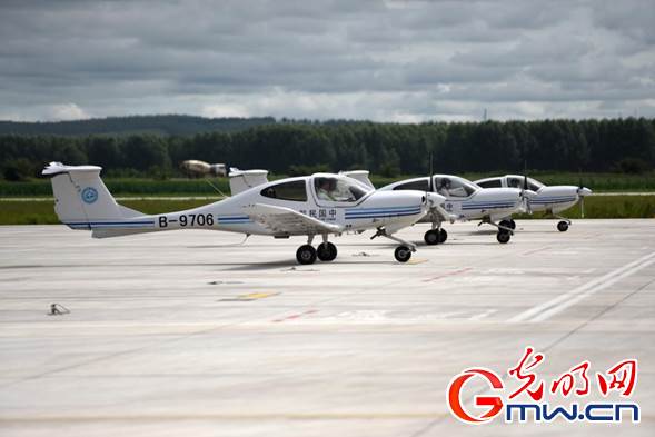內(nèi)蒙古扎蘭屯成吉思汗機場,飛行學(xué)員們正在駕駛訓(xùn)練機進(jìn)行飛行訓(xùn)練。光明網(wǎng)記者 潘迪攝