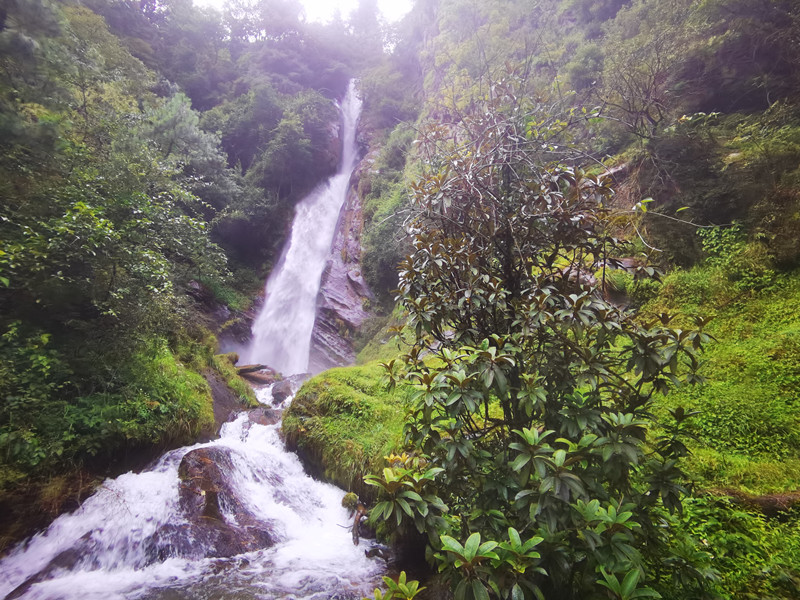 山間時(shí)有瀑布濺起水花,淌成潺潺的清澈溪水。你甚至能看到野生猴子出沒于公路兩旁,牦牛走在路邊,悠悠然地目送著一輛輛汽車離開。
