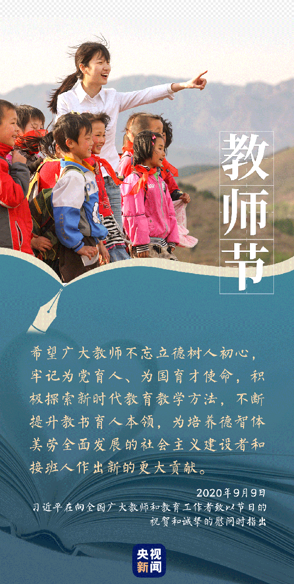 黨和國家事業(yè)發(fā)展需要一支師德高尚、業(yè)務(wù)精湛、結(jié)構(gòu)合理、充滿活力的高素質(zhì)專業(yè)化教師隊(duì)伍,需要一大批好老師。第三十六個(gè)教師節(jié),讓我們跟總書記一起,向好老師致敬。