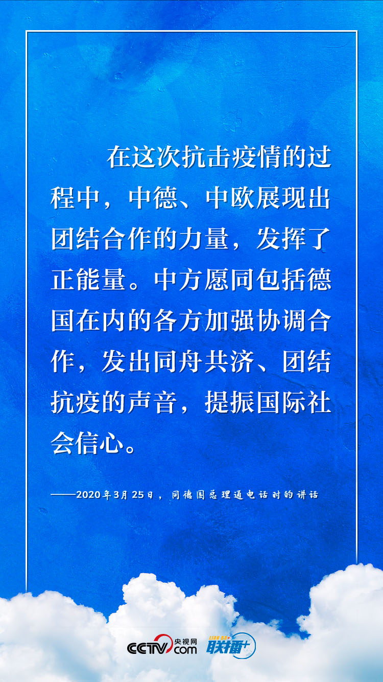 新冠肺炎疫情暴發(fā)以來(lái),中國(guó)和德國(guó)、歐盟相互支持、相互幫助。習(xí)近平主席多次與德歐領(lǐng)導(dǎo)人開展“云外交”,闡明加強(qiáng)合作的重要性。