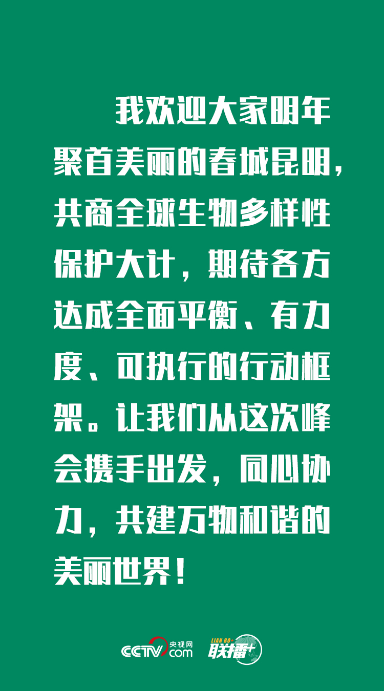 我們要切實踐行承諾,抓好目標(biāo)落實,有效扭轉(zhuǎn)生物多樣性喪失,共同守護(hù)地球家園。