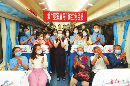 9月28日上午,從太原出發(fā)的4621次列車(chē),猶如一條長(zhǎng)龍穿行在呂梁山間,過(guò)了婁煩站,天空中飄起了小雨,車(chē)窗外霧蒙蒙的呂梁山變得更加夢(mèng)幻。5號(hào)車(chē)廂3排乘客劉旺林,正在教坐在對(duì)面的4歲兒子背詩(shī)詞?!芭銗?ài)人去北京檢查身體,已經(jīng)出來(lái)9天了。這不,趕著回去陪老人過(guò)中秋節(jié)。”劉旺林的聲音略顯低沉,但說(shuō)起蔡家崖號(hào)列車(chē)帶來(lái)的便利,便顯得有些興奮,“我們老區(qū)人民出行真正感覺(jué)到了什么叫風(fēng)雨無(wú)阻?!薄俺俗碳已绿?hào)列車(chē)追尋紅色記憶、品嘗土特產(chǎn)品、欣賞田園風(fēng)光,現(xiàn)在成了城市人的生活新時(shí)尚?!绷熊?chē)員張軍微笑著說(shuō)。