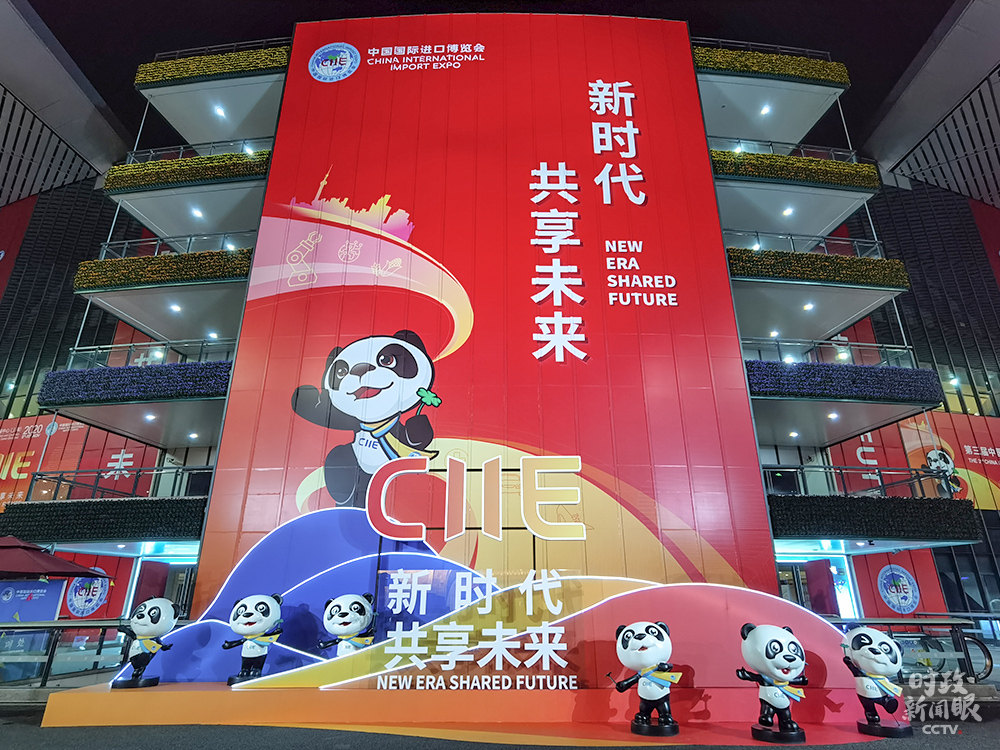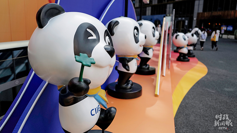 △進(jìn)博會(huì)吉祥物“進(jìn)寶”是亮眼元素。(總臺(tái)央視記者王萌萌、國廣記者李晉拍攝)