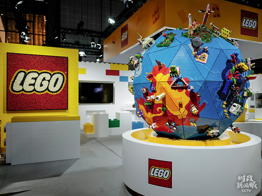 △這是進(jìn)博會(huì)消費(fèi)品展區(qū)的“樂造星球”展品,高2.7米(含底座),共包含62750塊樂高積木顆粒,顆??傊亓窟_(dá)106千克。(總臺(tái)國廣記者李晉拍攝)