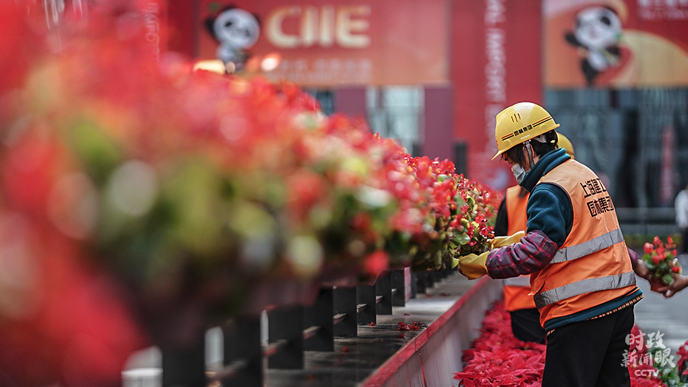 △進(jìn)博會(huì)開幕前,工作人員做最后的整理、布展等工作。(總臺(tái)國廣記者李晉拍攝)