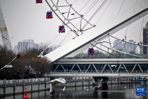 3月4日,海鷗在海河上飛翔。(新華社記者 趙子碩 攝)