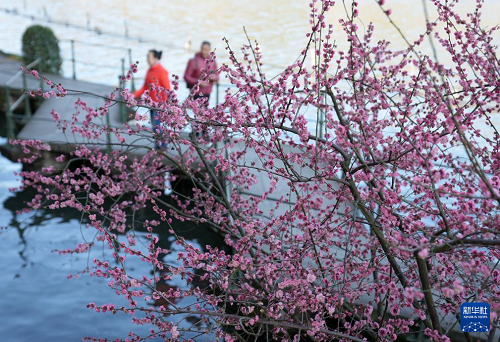 杭州西湖邊孤山一帶的梅花綻放(3月4日攝)。(新華社記者 韓傳號(hào) 攝)