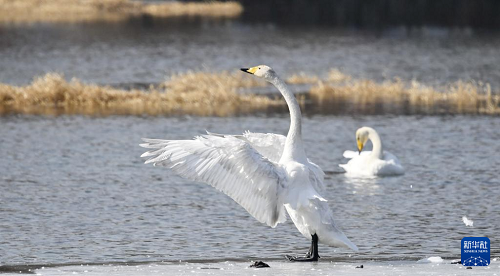3月4日,天鵝在密云水庫(kù)流域的清水河棲息。(新華社記者 李欣 攝)