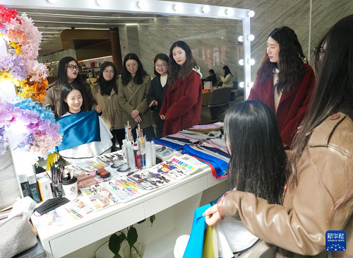 3月6日,一名女子在色彩測(cè)試課堂獲得專(zhuān)屬設(shè)計(jì)體驗(yàn)。當(dāng)日,浙江省湖州市美妝小鎮(zhèn)開(kāi)啟美好生活節(jié),設(shè)置美妝課堂、香氛展覽、美妝購(gòu)物等活動(dòng),吸引眾多女性觀眾前來(lái)參加。(新華社記者 翁忻旸 攝)