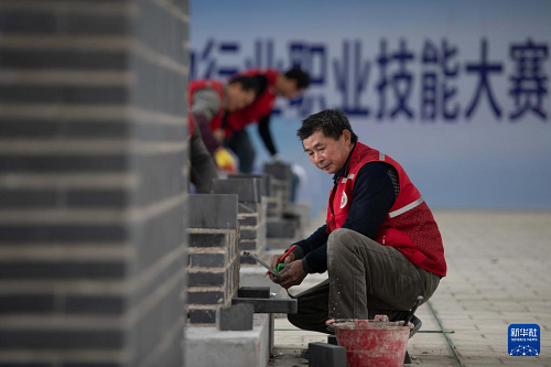3月6日,參賽選手在參加泥瓦作文物修復師項目比賽。(新華社記者 張端 攝)
