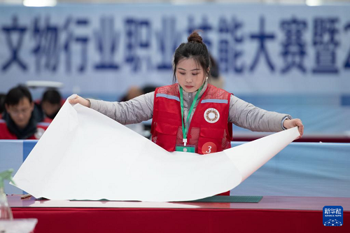3月6日,參賽選手在參加紙張書畫文物修復師項目比賽。(新華社記者 張端 攝)