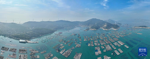 3月12日拍攝的連江縣黃岐半島附近海域的鮑魚養(yǎng)殖區(qū)(無人機(jī)全景照片)。(新華社記者 林善傳 攝)