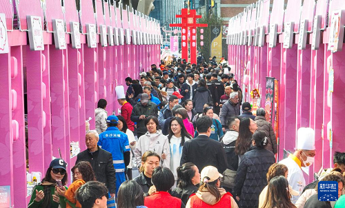 3月17日,消費者在2025年“中華美食薈”湖北潛江攤位參觀。(新華社記者 肖藝九 攝)