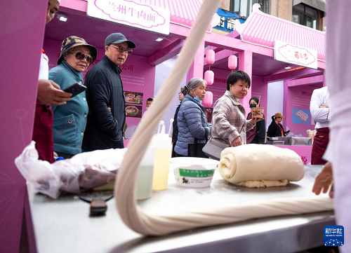 3月17日,消費者在2025年“中華美食薈”現(xiàn)場觀看拉面制作。(新華社記者 肖藝九 攝)