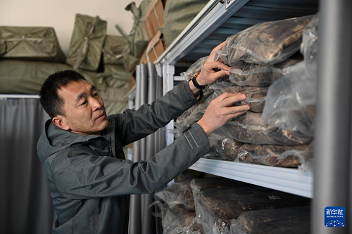 3月16日,工作人員在內(nèi)蒙古鄂爾多斯市達(dá)拉特旗防汛抗旱物資儲(chǔ)備庫(kù)清點(diǎn)物資。(新華社記者 貝赫 攝)