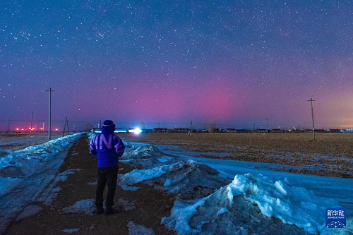 3月23日凌晨,攝影愛好者在黑龍江省雙鴨山市集賢縣拍攝極光。(新華社發(fā) 韓陽 攝)