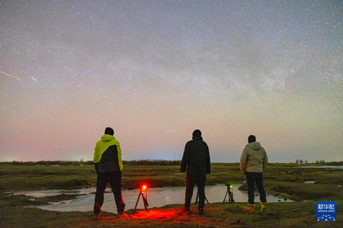 3月22日,攝影愛好者在黑龍江省佳木斯市富錦市大榆樹鎮(zhèn)觀測極光。(新華社發(fā) 曲玉寶 攝)