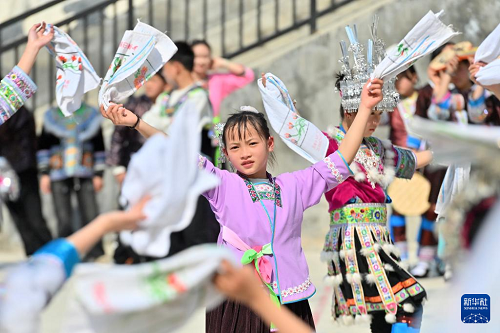 3月25日,廣西柳州市融水苗族自治縣桿洞鄉(xiāng)中心小學(xué)舉行石榴籽連籽·共慶“三月三”鄉(xiāng)村少年宮民族風(fēng)情文化展演活動(dòng),各族少年通過(guò)蘆笙踩堂舞、山歌對(duì)唱、刺繡等豐富多彩的民俗文化活動(dòng),喜迎“三月三”傳統(tǒng)節(jié)日。