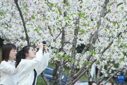 3月26日,人們?cè)跈鸦溟g觀賞美景。(新華社記者 翁忻旸 攝)