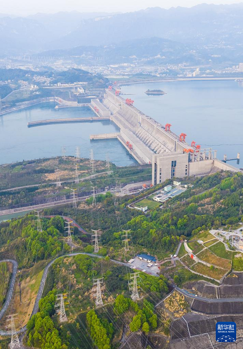 這是4月2日在湖北宜昌拍攝的三峽大壩及外送輸電線路(無人機照片)。(新華社發(fā) 鄭家裕 攝)
