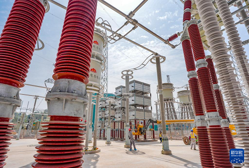 4月16日,安徽送變電工程有限公司施工人員在“疆電入渝”特高壓工程渝北換流站建設(shè)現(xiàn)場對電容器塔設(shè)備進(jìn)行調(diào)試驗(yàn)收。(新華社記者 黃偉 攝)