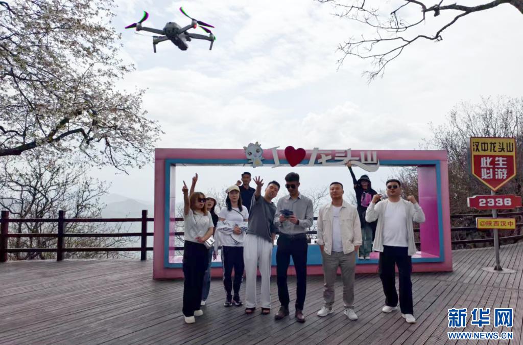 4月24日,游客在龍頭山景區(qū)觀景臺打卡自拍。
