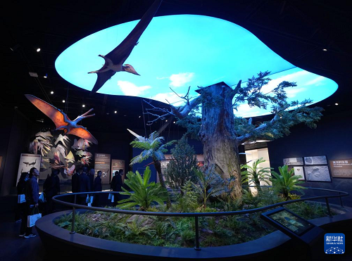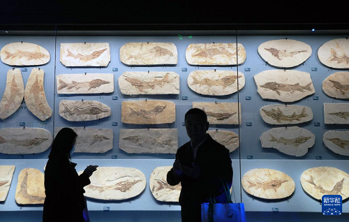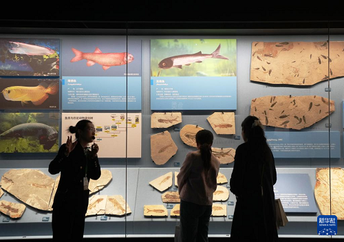 4月27日,游客在遼寧朝陽古生物化石博物館內(nèi)參觀。(新華社記者 李鋼 攝)
