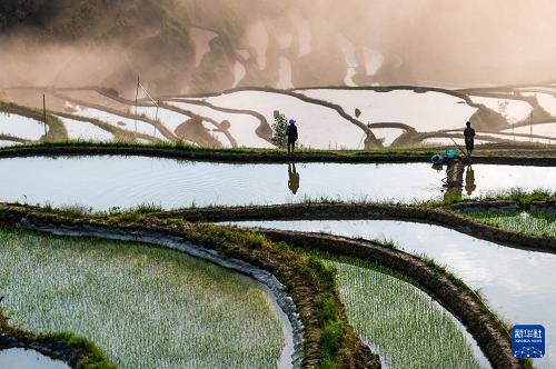 時下,位于貴州省黔東南苗族侗族自治州從江縣加榜鄉(xiāng)的加榜梯田進入春耕農(nóng)忙時節(jié)。