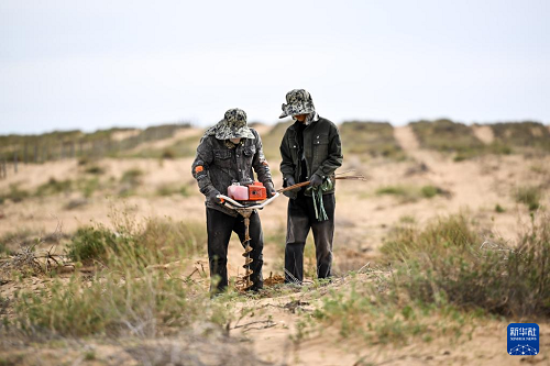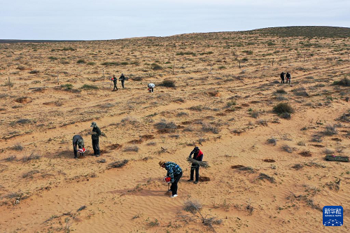 連日來,在內(nèi)蒙古鄂爾多斯市杭錦旗境內(nèi)的庫布其沙漠里,治沙工人忙著栽種沙柳、檸條等沙生植物,開展庫布其沙漠生態(tài)治理。今年以來,杭錦旗多舉措打好“三北”工程攻堅(jiān)戰(zhàn),實(shí)施建設(shè)庫布其沙漠鎖邊林草帶、風(fēng)沙路徑阻隔帶等5個(gè)治沙項(xiàng)目,計(jì)劃年內(nèi)完成治沙任務(wù)100萬畝以上。