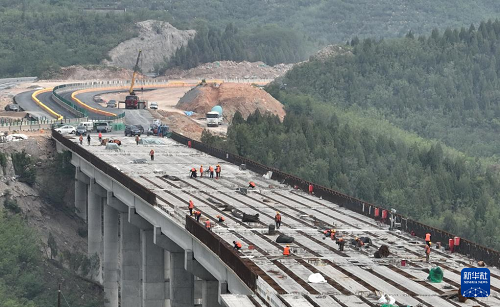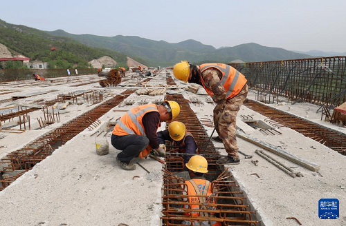 5月7日,工人在石太高速公路改擴(kuò)建項(xiàng)目核桃園4號(hào)橋建設(shè)工地施工。(新華社記者 楊世堯 攝)