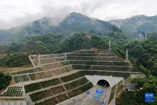 5月13日拍攝的西康高鐵秦嶺九天山隧道(無人機(jī)照片)。(新華社記者 李一博 攝)