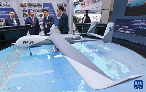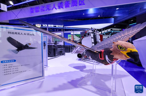 5月14日在第十二屆中國國際警用裝備博覽會智慧化無人裝備展區(qū)拍攝的特巡用無人AI偵測鳥。(新華社記者 殷剛 攝)