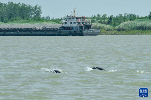 5月21日,在安徽省銅陵市義安區(qū)胥壩鄉(xiāng)附近的長江江面上,多頭野生江豚在江面上不時躍出水面,與浪花共舞。近年來,當(dāng)?shù)貙嵤┫到y(tǒng)性生態(tài)修復(fù),長江江豚數(shù)量穩(wěn)中有升。