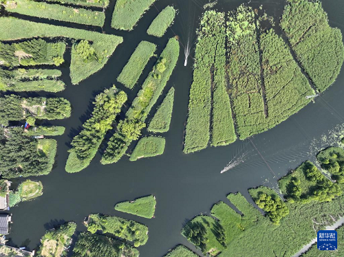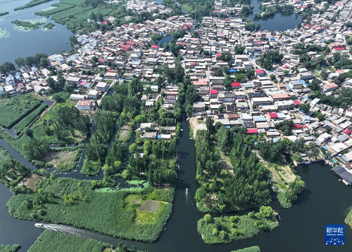白洋淀內的村莊(6月11日攝,無人機照片)。(新華社記者 牟宇 攝)