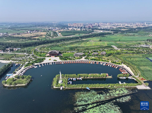 白洋淀旅游碼頭(6月11日攝,無人機照片)。(新華社記者 牟宇 攝)