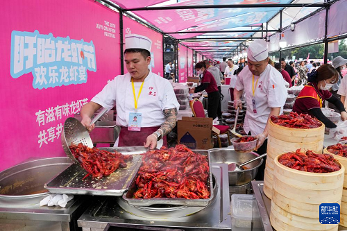 6月12日,第25屆盱眙龍蝦節(jié)歡樂龍蝦宴在江蘇省淮安市盱眙縣龍蝦節(jié)廣場舉行。為期三天的龍蝦宴預(yù)計(jì)消費(fèi)100噸小龍蝦。目前,盱眙縣有21萬人從事小龍蝦產(chǎn)業(yè),小龍蝦養(yǎng)殖面積98.5萬畝。
